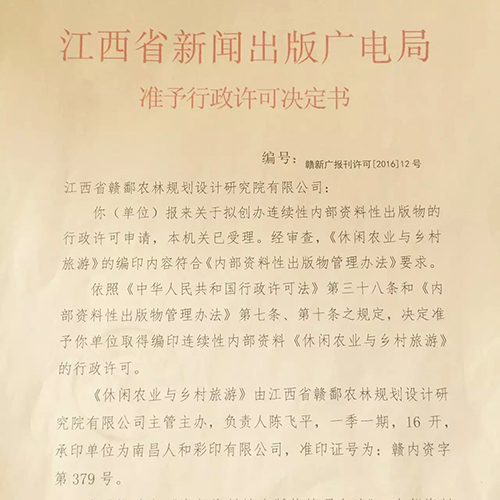 由江西省赣鄱农林规划设计研究院主办的《休闲农业与乡村旅游》杂志正式获批,我们将以“精心描绘休闲农业蓝图,用心舞动乡村旅游盛况”为己任,为中国休闲农业和乡村旅游发展做出更大的贡献!